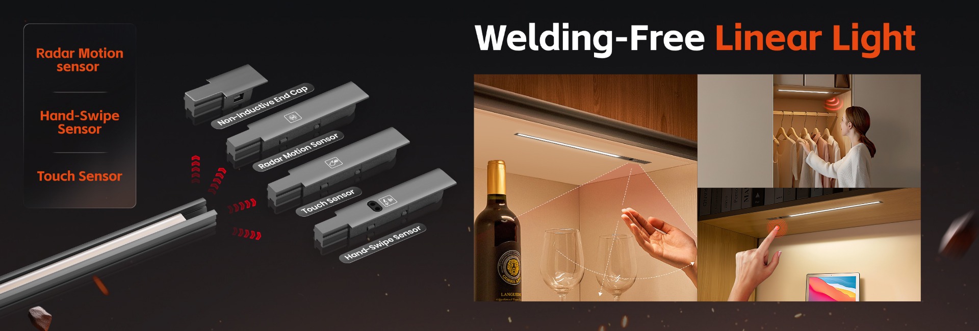 DC12V Modern Smart Sensor LED Cabinet Lights for Kitchen Cupboard Ultra-Thin Recessed Design with Aluminum Plug Plastic Shade